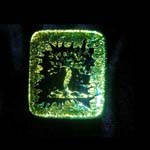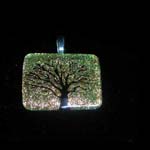 Tree of life etched on a brilliant gold dichroic glass, hidden sterling silver bail |
